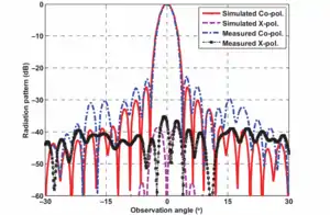 A fixed reflectarray has a single beam direction per feed. Changing the shape of the unit cells alters their reflection phase. The unit cells cannot be reconfigured. This has applications in point-to-point communications, or for a satellite covering a specific geographic region (with a fixed beam contour).[8] A reconfigurable reflectarray has unit cells whose phase can be electronically controlled in real-time to steer the beam or change its shape. Several methods have been used to implement reconfigurable reflectarray unit cells, including PIN diodes,[9][10] liquid crystal,[11][12][13][14] and novel materials. Each of these methods introduces loss which reduces the efficiency of the unit cells. Linearity (such as distortion due to the diodes) also needs to be considered to minimise out-of-band radiation which could interfere with users on adjacent frequencies.[15]