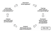 Gibbs' suggestions are often cited as "Gibbs' reflective cycle" or "Gibbs' model of reflection", and simplified into the following six distinct stages to assist in structuring reflection on learning experiences:[24]