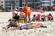 Due to health concerns, the city of Rio de Janeiro prohibited in 2009 the sale of many beloved foods such as queijo coalho, shrimp skewers, caipirinha and churrasco.[47] It was argued that the careless disposal of charcoal on beaches would often harm children and the elderly, and that the uncertain precedence of certain items could impose a health risk. Beach vendors, however, have not refrained from selling those items.[48][49] Other cities have since followed the lead, and have also banned the usage of grills for beach vendors.[50]