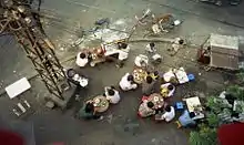 Dhaka street food vendors sell pitha, chotpoti, puchka, jhalmuri, badam, and various fried items.[19] There are also other unique street foods at the Dhaka new market such as burnt corn on the cob covered in a special sauce, and egg burgers.[20] Some of the most popular street foods in Bangladesh are full chickens that are marinated in over 40 spices then fried in oil, egg sandwiches that are full of eggs and then battered and fried, and rasmalai, labang, and patishapta which look like crepes.[21]