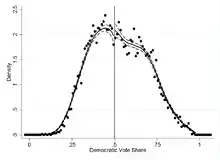 In statistics, econometrics, political science, epidemiology, and related disciplines, a regression discontinuity design (RDD) is a quasi-experimental pretest-posttest design that aims to determine the causal effects of interventions by assigning a cutoff or threshold above or below which an intervention is assigned. By comparing observations lying closely on either side of the threshold, it is possible to estimate the average treatment effect in environments in which randomisation is unfeasible. However, it remains impossible to make true causal inference with this method alone, as it does not automatically reject causal effects by any potential confounding variable. First applied by Donald Thistlethwaite and Donald Campbell to the evaluation of scholarship programs,[1] the RDD has become increasingly popular in recent years.[2] Recent study comparisons of randomised controlled trials (RCTs) and RDDs have empirically demonstrated the internal validity of the design.[3]