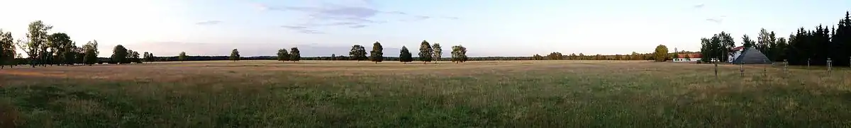 The designated airfield measured roughly 250 hectares. Farmers were expropriated without compensation, but those who owned herds of Heidschnucken were allowed to leave them to graze on the grasslands of the airfield. The area originally was slightly hilly and sandy, partially covered by heath as well as oak and birch trees. There was a basin containing the source of the Fintau stream in the middle of the area. Construction started by leveling and deep ploughing the land. As the sandy soil with a layer of hardpan was too infertile for the desired grass-covered airfield, plenty of peat and dung was used as fertilizer.[3]: 5