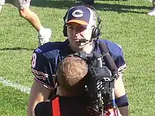Grossman became an unrestricted free agent after the 2007 season, but said he wished to return to the Bears.[54] Bears general manager Jerry Angelo said, "We would like to have Rex back in the mix." He added that Grossman will face additional competition if he returns, emphasizing the team's need for a stable passing game.[55][56] Smith had also voiced similar opinions.[57] Grossman signed a new one-year contract with the Bears on February 23, 2008.[58] Under terms of the deal, Grossman had a $3 million base salary.[59] The Bears also granted Orton a contract extension and planned to have the two compete for a starting position.[60] On August 18, 2008, after two preseason games, Coach Smith named Orton as the team's starting quarterback for the 2008 season.[61]