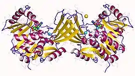 - Sigrell JA, Cameron AD, Jones TA, Mowbray SL (February 1998). "Structure of Escherichia coli ribokinase in complex with ribose and dinucleotide determined to 1.8 A resolution: insights into a new family of kinase structures". Structure. 6 (2): 183–93. doi:10.1016/s0969-2126(98)00020-3. PMID 9519409.
