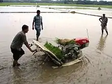 A rice transplanter is a specialized transplanter fitted to transplant rice seedlings onto paddy field. Mainly two types of rice transplanter i.e., riding type and walking type. Riding type is power driven and can usually transplant six lines in one pass. On the other hand, walking type is manually driven and can usually transplant four lines in one pass.