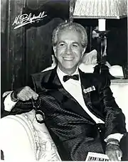 In 1968 he starred in his own KCOP two-hour color television special, Mr. Blackwell Presents, with Anna Maria Alberghetti, Nick Adams and Rose Marie.[24][25] It was the first telecast in history in which a designer presented his line on television. He continued to be recognized as preeminent during his years in the field.[26] Also in 1968, Mr. Blackwell released a LP album of a show titled "The Mr. Blackwell Show" on the Rob Rich Records label that was presented on stage at The Desert Inn in Las Vegas in 1967, as well as The Cincinnati Symphony Orchestra in early 1967 as well. The album only saw limited distribution probably due to poor sales and as such is now a sought after collectors item today. The album features Mr. Blackwell reciting fashion commentary over a musical background.