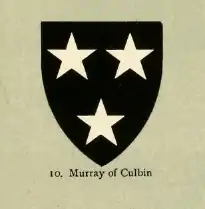The Murrays of Culbin and Pulrossie were also descendants of Richard.[17][18] The Murray of Culbin coat of arms is recorded as Sable, three stars argent.[1]