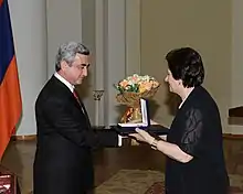 In recognition of her "contribution made to the expansion of the medical vocational educational institutions՛ network in Armenia" she was awarded with an "Anania Shirakatsi" Medal by President Serzh Sargsyan.[10][11]