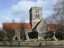 A church in Ringwood is mentioned in the Domesday Book of 1086.[9] It was rebuilt in the 13th century and survived until 1853, when it was completely knocked down and rebuilt.[9] The church contains a 15th-century monumental brass of John Prophete, Dean of Hereford and York.[9]