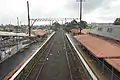 The original signal box was located on Platforms 1 and 2, and it was originally provided in 1926.[2] It has since been relocated to the bus interchange. Signals are currently controlled from within the station building on Platform 3. Stabling sidings are located at the Down end of the station. The sidings closest to the Lilydale line were provided in 1973, and were extended in 1978,[2] whilst the sidings closest to the Belgrave line and the Bedford Road level crossing were provided in 1979.[3] It involved the temporary reposition of the Belgrave line whilst construction took place.[3]
