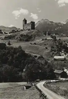 Riom was inhabited during the Roman era, from the 1st century through the 4th. During this time, it was a mansio or way-station along the Julier Pass road. After the Fall of the Western Roman Empire, farmers and herders continued to live here during the Early Middle Ages. In 840 it was personally owned by the king of Raetia Curiensis and was a local administrative center as well as the site of major church.[2] The church was given by King Arnulf to a vassal of his named Ruotpert, who in 904 traded it to Lorsch Abbey. Riom and the surrounding lands eventually passed to the Knights of Wangen-Burgeis in the early 13th century and around 1226 they built Riom Castle.