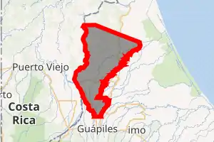 It is located in the northeastern region of the country and borders the districts of Colorado to the north, Guápiles to the south and Cariari to the east. While to the west it borders with the province of Heredia.