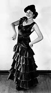 Margarita's father wanted her to become a professional dancer, while her mother hoped she would become an actress.[8] Her paternal grandfather, Antonio Cansino, was renowned as a classical Spanish dancer. He popularized the bolero, and his dancing school in Madrid was world-famous.[9] Antonio Cansino instructed Rita Hayworth's first dance lesson.[10] Hayworth later recalled, "From the time I was three and a half ... as soon as I could stand on my own feet, I was given dance lessons."[11]: 67 She noted "I didn't like it very much ... but I didn't have the courage to tell my father, so I began taking the lessons. Rehearse, rehearse, rehearse, that was my girlhood."[12]: 16