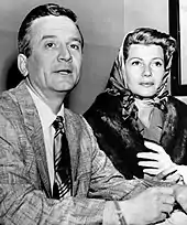 Hayworth married Orson Welles on September 7, 1943, during the run of The Mercury Wonder Show.[63] None of her colleagues knew about the planned wedding (before a judge) until she announced it the day before. For the civil ceremony, she wore a beige suit, a ruffled white blouse, and a veil. A few hours after they got married, they returned to work at the studio. They had a daughter, Rebecca, who was born on December 17, 1944, and died at the age of 59 on October 17, 2004. They struggled in their marriage, with Hayworth saying that Welles did not want to be tied down: