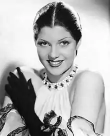 Hayworth had top billing in one of her best-known films, the Technicolor musical Cover Girl, released in 1944.[29] The film established her as Columbia's top star of the 1940s, and it gave her the distinction of being the first of only six women to dance on screen with both Gene Kelly and Fred Astaire.[30] "I guess the only jewels of my life", Hayworth said in 1970, "were the pictures I made with Fred Astaire ... And Cover Girl, too."[31]