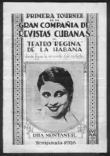 Rita Aurelia Fulcida Montaner y Facenda (20 August 1900 – 17 April 1958), known as Rita Montaner, was a Cuban singer, pianist and actress. In Cuban parlance, she was a vedette (a star), and was well known in Mexico City, Paris, Miami and New York, where she performed, filmed and recorded on numerous occasions. She was one of Cuba's most popular artists between the late 1920s and 1950s, renowned as Rita de Cuba. Though classically trained as a soprano for zarzuelas, her mark was made as a singer of Afro-Cuban salon songs including "The Peanut Vendor" and "Siboney".[1]