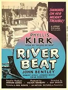 River Beat is a 1954 British noir, drama, crime film directed by Guy Green and starring John Bentley, Phyllis Kirk and Leonard White.[1] The screenplay concerns a river police inspector who faces a moral dilemma when a woman he knows gets caught up in jewel smuggling.