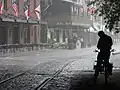 A wet River Street. The in-view Kevin Barry's Pub closed in the new year of 2020 after nearly forty years in business[17]