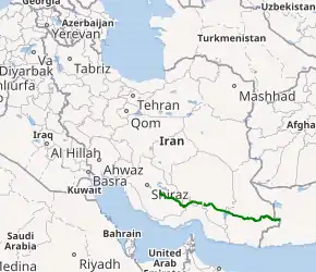 Road 92 is a road in Iran.[1] The western part of it is a part of Shiraz-Bandarabbas road. The central part passes northern Hamun Jazmurian Lake. The eastern part connects Iranshahr to Saravan.