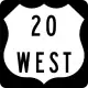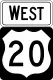 The now-defunct, non-standard US 20 west sign, Main St. after Lexington St., Waltham Center, Massachusetts