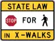 R1-6a: In-Street Ped Crossing (The legend STATE LAW is optional. A fluorescent yellow-green color may be used instead of yellow for this sign.)