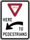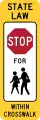 R1-6: In-Street Ped Crossing (The legend STATE LAW is optional. A fluorescent yellow-green color may be used instead of yellow for this sign.)