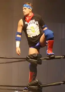 Robbie Eagles (ロビー・イーグルス Robī Īgurusu, born 13 February 1990) is an Australian professional wrestler, who currently works for New Japan Pro-Wrestling (NJPW), where he is a member of Chaos. Eagles is a former IWGP Junior Heavyweight Champion and was one-half of the IWGP Junior Heavyweight Tag Team Champions with his partner Tiger Mask IV. Eagles started wrestling on the Australian independent scene, for companies like Professional Wrestling Alliance, Melbourne City Wrestling and World Series Wrestling. Eagles has also gained prominence in other countries wrestling for companies such as Chikara, Progress and Pro Wrestling Guerrilla.