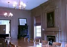 Known to be Robert Allerton's favorite room of the house, the Butternut Room was originally designated as the Dining Room. The room features butternut wall paneling. Above the fireplace hangs a portrait of Robert Allerton when he was around 24 years old, painted by his friend, Ellen Emmet Rand.[45]