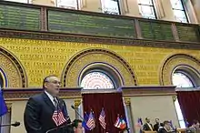 As one of only three combat veterans in the State Assembly, he placed a large part of his legislative focus on veterans' issues.[86][87] He was credited with building the coalition that saved the five New York State Veterans Homes from elimination in the 2011 New York State budget.[88] The homes are disabled veteran and veterans gerontological elder-care facilities, which were facing steep budget cuts and potential closure of one or more of the facilities, until the cuts were averted due to efforts from twenty-seven State lawmakers.[89]
