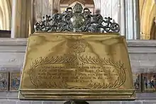 During his exile the king appointed him Dean of Wells. On entering on this office at the Restoration he found the deanery in the hands of Cornelius Burges, who refused to surrender it. Creighton brought a legal action of ejectment to obtain possession of it. He helped restore the cathedral from the dilapidated state into which it had fallen, partly by mischief done in 1642 and partly by neglect. On 22 June 1663 Creighton took the oaths for his naturalization in England. On 25 May 1670 he was elected bishop of Bath and Wells and consecrated 19 June following. He died on 21 November 1672, and was buried in St. John's Chapel in his cathedral. His marble tomb and effigy had been prepared by himself at great expense.