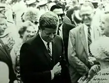 In 1958 INS merged with United Press to become United Press International (UPI). In the transition many people lost their jobs, including Thompson. That same night he attended a party at Robert F. Kennedy's McLean, VA home Hickory Hill and while in conversation with then-Senator John F. Kennedy, the future President offered Bob a position as his press secretary. One of Bob's major contributions to JFK's 1958 senatorial reelection campaign was a movie he put together entitled "The U.S. Senator John F. Kennedy Story" that was broadcast on television in Massachusetts. Kennedy later said "it was the best thing (he) had in the campaign."[3]