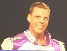 Peck returned to Chikara on July 28, now working under a mask as "The Mysterious and Handsome Stranger", a Texan gimmick based on Dusty Rhodes,[69] defeating Icarus in a singles match.[64][70][71] He then started a win streak, defeating The Shard,[70] Grizzly Redwood,[72] Tim Donst,[72][73] and Lancelot Bravado in singles matches.[74][75] On September 14, The Stranger entered the 2012 King of Trios tournament, teaming with Osaka Pro Wrestling representative Mihara and Tito Santana. The trio was, however, defeated in their first round match by The Spectral Envoy (Frightmare, Hallowicked and UltraMantis Black), who went on to win the entire tournament.[76][77] Prior to the match, The Stranger came face-to-face with Veronica, who had just managed the Throwbacks in their first round match and who, in storyline, was impressed with the southern gentleman yet unable to recognize the man under the mask.[77] Following the tournament, Peck continued his singles match win streak over deviAnt and Walter Eaton.[78][79][80] Following his win over Eaton, The Stranger made a veiled challenge towards Mark Angelosetti.[69] The Stranger's win streak ended on November 10, when he was pinned by Angelosetti in a four tag team elimination match, during which Touchdown also killed his pet bird Sapphire.[81][82] The following day, The Stranger was defeated by Angelosetti in a singles match via disqualification.[83] On December 2 at Chikara's third internet pay-per-view, Under the Hood, The Mysterious and Handsome Stranger was crowned Chikara's homecoming king. After a dance with the homecoming queen, Veronica, he dumped pig slop over her, before unmasking, revealing his true identity.[84]