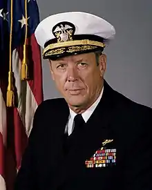From March 27, 1962 to March 2, 1963,[6] Schoultz served as commanding officer of VA-93 deployed on the carrier Ranger. He later served as executive officer of the carrier Franklin D. Roosevelt.[2] Schoultz was given command of the attack cargo ship Arneb from December 20, 1969 to January 1971[7] and the carrier Forrestal from June 23, 1971 to November 1, 1972.[8] He was on staff duty and professional education in 1973-77,[2] then from April 1977 to July 1979[2] was commander of Carrier Group Two assigned to the United States Sixth Fleet.[3] Following this he had a brief tour on the OPNAV staff before becoming Commander, Naval Air Force, US Pacific Fleet, in January 1980. In 1983 he became Deputy Chief of Naval Operations (Air Warfare), then from February 1, 1985 until his retirement in 1987 was US Commander Eastern Atlantic and Deputy Commander in Chief US Naval Forces, Europe.[2]