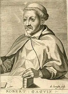 Robert Gaguin (older spelling: Robert Guaguin; winter of 1433/34 – May 22, 1501) was a noted French Renaissance humanist and philosopher; he was minister general of the Trinitarian Order.