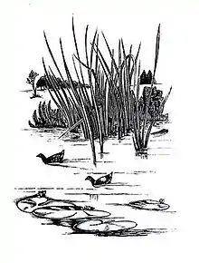 Gibbings had begun to take part in natural history trips to the Thames organised by the university. He later wrote: "In the early days of 1939 there arose in me a great desire to find peace beside a river".[4] Along with Patrick and two other helpers he built himself a boat, the Willow, and floated down the Thames. The result was Sweet Thames Run Softly (1940). He took the title from Edmund Spenser's Prothalamion: "Sweete Themmes! runne softly, till I end my Song". His observations and wood engravings of the countryside, the river and its natural history, were the fruits of gentle months spent on the Thames, accompanied by sketch pad and microscope. Written at a time of great insecurity, the book captivated readers, acutely aware that the world it portrayed was in imminent danger of being wiped out. Thomas Balston wrote of Gibbings: "Few readers in these harassing days escape the longing for a simpler life, and Gibbings is very much a modern Thyrsis."[12] He had captured a moment shared by many other people at the time, and over 140,000 copies of the book were printed.[7]
