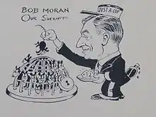 In 1929 Moran was elected sheriff of the Bronx, taking office on January 1, 1930.[23] As sheriff, Moran gained notoriety for refusing to jail members of the National Guard who had been sentenced to serve short prison terms for failing to appear at drill.[24] The jail's lack of accommodations for non-criminal prisoners meant that guardsmen, some just 17 years old, had to be confined with violent felons. Moran argued that "in time of peace and especially now, with distress and unemployment, the military law should not be enforced to extremes" and that no consideration had been given as to whether the boy prisoners were ill, had dependents or might lose their jobs.[4] So strongly did Moran object, that the situation could only be resolved by the issuance of a writ of mandamus compelling him to act.[4]