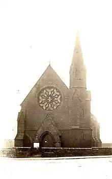 This is a Grade II listed building.[75] It was designed by architects James Mallinson (1819−1884) and Thomas Healey (1809-1862), and completed in 1852. The foundation stone was laid on Thursday 12 June 1851,[76] and the church was consecrated on Tuesday 27 July 1852.[77] This church site is significant in that it is in the area where Robert and Catherine Mawer, and William Ingle, were born. Most of the local inhabitants turned out for the foundation ceremony, which included in its procession all those contracted to work on the building, "(forty in number) carrying banners with appropriate mottoes." Afterwards, "the workmen, with the ringers and singers, sat down to a dinner of roast beef and plum pudding."[76]
