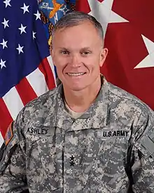 Robert Paul Ashley Jr. is a retired lieutenant general in the United States Army who served as the Director of the Defense Intelligence Agency from 2017 to 2020. He previously served as Deputy Chief of Staff of the Army G-2.[1] He received a commission through ROTC as a 1984 graduate of Appalachian State University.[2] He retired from active duty on October 1, 2020.[3] He currently serves as Senior Advisor to the Chairman of Arcanum, a global strategic intelligence company.[4] He is the son of a United States Air Force veteran of the Korean War who later lived in North Carolina and worked a sewing machine mechanic.[5]