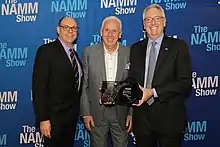 He was the Director of NAMM (National Association of Music Merchants) from 2008-2011. NAMM is a not-for-profit association that promotes the pleasures and benefits of making music and strengthens the $17 billion global music products industry. As president, in 2005, he contributed to their Oral History project and again in 2018.[8] He received awards in recognition of his dedicated service as a Director and for his excellent service in the Music Products Industry. In 2020 he was awarded the NAMM Oral History Service Award.[9]
