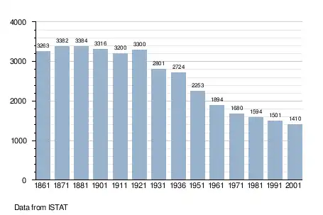 - "Superficie di Comuni Province e Regioni italiane al 9 ottobre 2011". Italian National Institute of Statistics. Retrieved 16 March 2019.