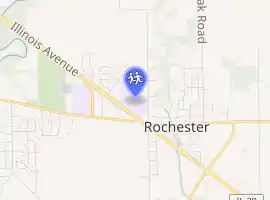 The campus of Rochester High School is located on the north side of Illinois Route 29 in Rochester. The high school shares the campus and a building with Rochester Junior High School. The campus contains not only the school building and parking, but also a track and field/football stadium, a baseball fields,a softball field, six tennis courts, and an indoor athletic complex. The high school soccer fields are on the campus of Rochester Elementary 2–3 School.