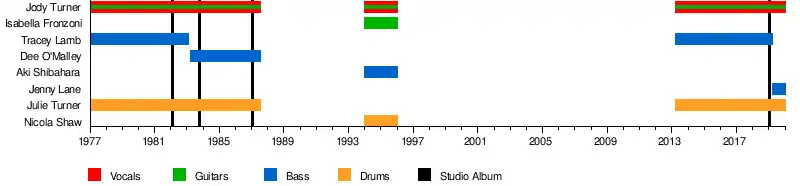 - Julie Turner – drums (1977–1987, 2013–present)