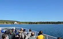 The only public transportation to the island is by the passenger ferry Karfi from Washington Island.[9] However, there is mooring and dock space for people with their own boats, and during winter the island is accessible via snowmobile and foot traffic. No "wheeled vehicles" (cars, all-terrain vehicles, bicycles) are allowed to be brought onto the island by visitors, although park staff use them routinely.[10]