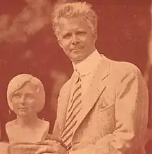 He exhibited at the 1911 Espoizione Internazionale d'arte in Rome.[44] The Copley Gallery in Boston hosted a one-man-show of his sculpture in early 1913.[45] He exhibited at the 1913 Salon of the Société des Artistes Français in Paris,[46] and the 1913 Exposition Internationale de Gand in Brussels.[46] The John Herron Art Institute in Indianapolis hosted a one-man-show of his sculpture in April/May 1914,[47] and he exhibited at the 1915 Panama-Pacific International Exhibition in San Francisco.[48] He exhibited the bust of his wife and a collection of medals at the 1914 exhibition at the Pennsylvania Academy of the Fine Arts, in Philadelphia; and his door panels for the Forsyth Dental Infirmary at PAFA's 1917 exhibition.[49] His work was part of the sculpture competition of the 1932 Summer Olympics in Los Angeles.[50]
