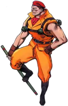 His debut as a playable fighter was in the fighting game Street Fighter Alpha 2 in 1996, in which he seeks to build a military utopia following the downfall of the Mad Gear gang and wants to recruit his former ally and nemesis, Sodom and Guy respectively, to his cause. Rolento's ending in Alpha 2 depicts him invading the streets of Metro City after forming his own army. In Street Fighter Alpha 3, Rolento tries to persuade Cody, another former nemesis, to join his army. In his ending, Rolento attempts to infiltrate Shadaloo's underground base to gain M. Bison's secret weapon, the Psycho Drive, only to destroy it with Sodom's help.[3] His Alpha series' incarnation also appears as a playable character in the 2001 crossover fighting game Capcom vs. SNK 2, as well as in the 1999 fighting game Final Fight Revenge which follows his backstory from the Alpha series.