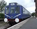 | British Rail | Unit DMBS 51342 and DMS 51384 Set No - | Class 117 | The railway has the two driving cars from what was a three-car Class 117 DMU. There were 127 of this type of vehicle and they were delivered new in 1959 to Southall depot working services between Paddington and the suburbs. They continued to be based in the London area until withdrawal in the 1990s, they arrived at the Railway in 2004. Each coach has two Leyland diesel engines underneath, which drive the wheels mechanically through a fluid flywheel. The driver's cab at each end of the unit means it can be driven from either end, making it ideal when running to Coopersale, and speeding up turn-around times. The windows in the ends mean passengers in either coach get an excellent view of the line ahead or behind and also get to watch the driver in action. The unit ran in an unusual dark blue and white 'EOR' livery until 2007, when it was taken out of service by the new owner when services were suspended. The interior has been refurbished, the unit is receiving attention to the exterior bodywork. DMBS is being restored; DMS is in service twinned with a Class 121 unpowered driving trailer.[16] | ![]() |