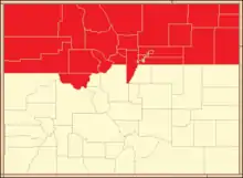 The archdiocese covers an area of 40,154 square miles (104,000 km2) which includes the city and county of Denver, and the Colorado counties of Adams, Arapahoe, Boulder, Broomfield, Jefferson, Larimer, Logan, and Weld. Between the archdiocese's creation and the erection of the Diocese of Pueblo in 1941, the Archdiocese of Denver was the sole Latin Church jurisdiction in the state of Colorado.