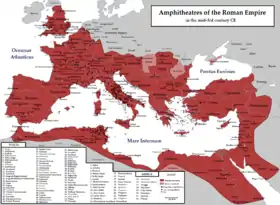 The Roman Empire was remarkably multicultural, with "a rather astonishing cohesive capacity" to create a sense of shared identity while encompassing diverse peoples within its political system over a long span of time.[103] The Roman attention to creating public monuments and communal spaces open to all—such as forums, amphitheatres, racetracks and baths—helped foster a sense of "Romanness".[104]