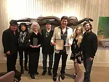 ![]() Ronnie McDowell presenting his Reflections of a King print during a concert in Florida, 2007. | |