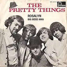 "Rosalyn" was written by songwriter Jimmy Duncan, who was also co-manager of the Pretty Things with Bryan Morrison at the time, along with Bill Farley, studio owner where the band was recording.[1] The song was recorded as their debut single on Fontana Records, and became the Pretties first hit, reaching No. 41 on the UK singles chart in January 1964.[2] It features Bo Diddley style lead guitar as well as prominent slide guitar.